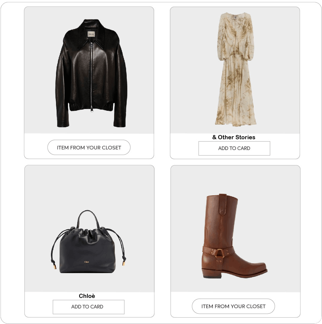 Your look is curated from a wide selection of brands — from luxury to high street. Best of all, you can incorporate pieces you already own and love wearing.