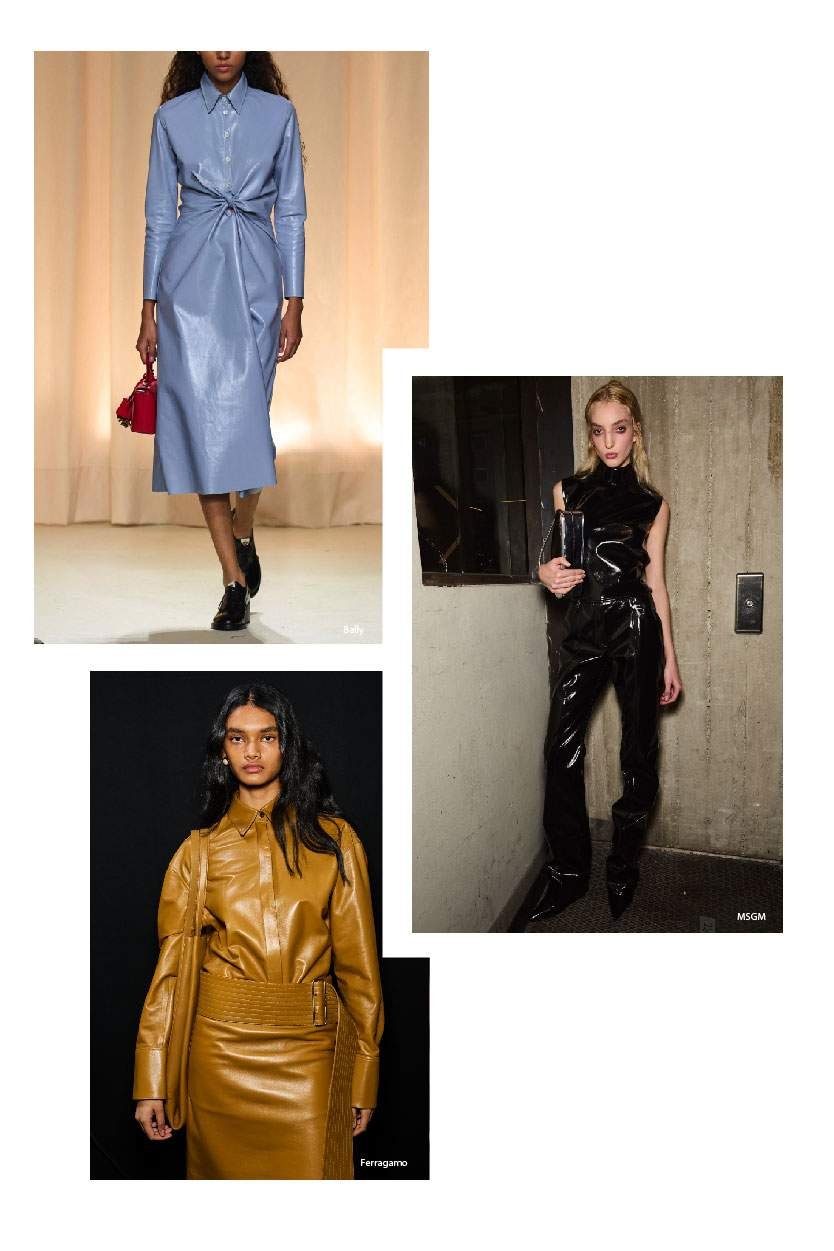 When it comes to standout materials for the Autumn 2024 season, leather takes the spotlight. From shirts and skirts to dresses, trousers, jackets, and coats, liquid leather emerged as a dominant force on the runways, standing out in glossy finishes—whether it was vinyl or leather so supple that it caught the light beautifully.